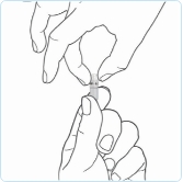 Hold capsule with the writing at the top. Tap the capsule to make sure the granules fall to the bottom.
