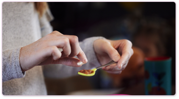 ALKINDI SPRINKLE can be given by spoon with soft food or sprinkled directly into your child’s mouth.