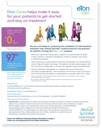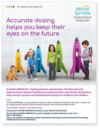 A comprehensive document highlighting the full Important Safety Information for ALKINDI SPRINKLE and how treat children with adrenal insufficiency.